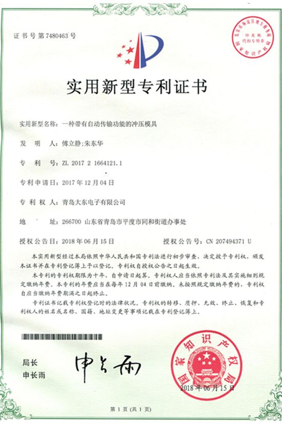 青島大東標牌-實用新型專利證書