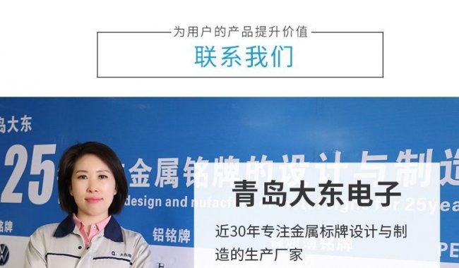 至2020年,青島大東公司已踏實走過25個春秋,公司擁有電鍍、蝕刻、氧化、真空鍍、激光、噴漆等各種表面處理產(chǎn)線,可進行標牌,其他金屬物以及素材多樣的制造加工工程,是集研發(fā)、設計、生產(chǎn)、服務的一站式企業(yè)。